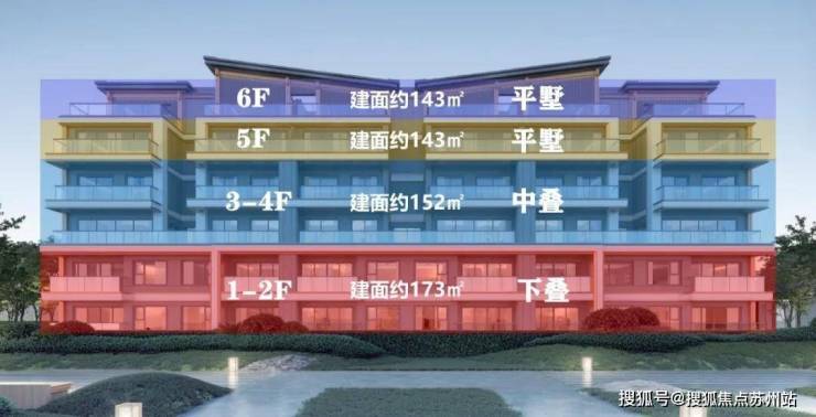 ❖第三种6F墅:靠近社区中轴的上下叠各两层,中间两层做平墅,很好地满足了不同人群。